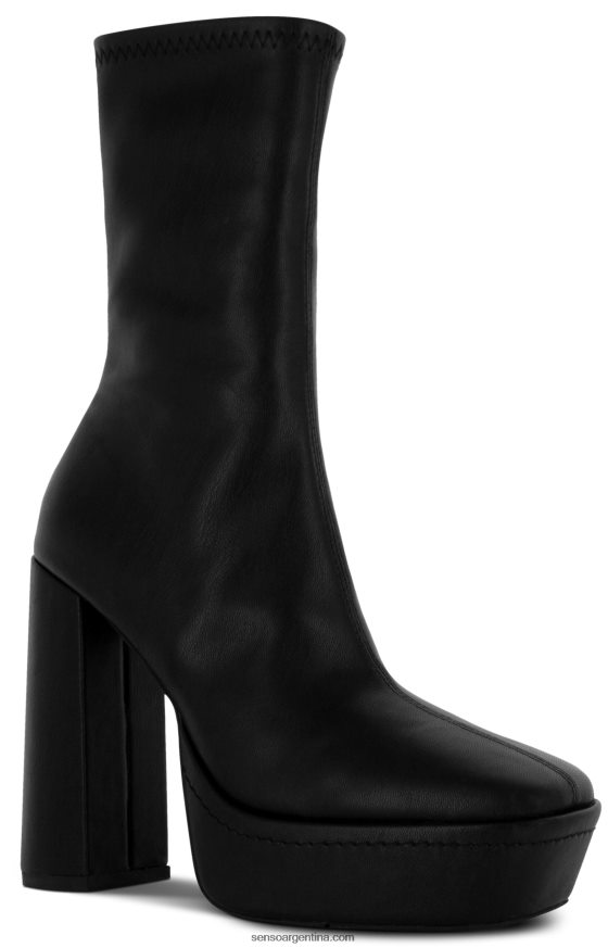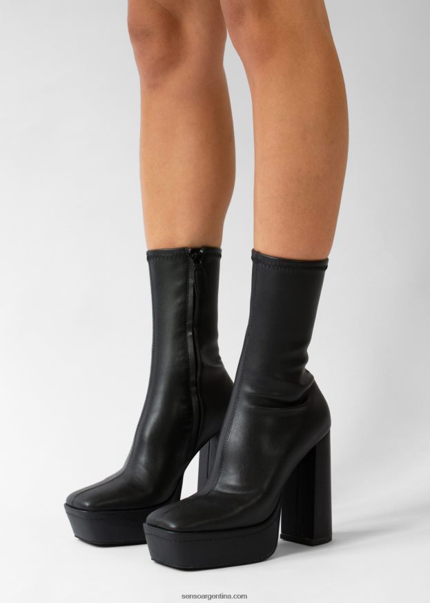 Botas de piel vegana elástica de ébano, con cremallera de nailon, tacón en bloque y puntera en forma de almendra.