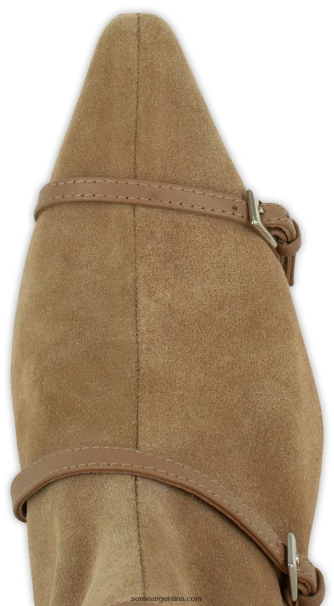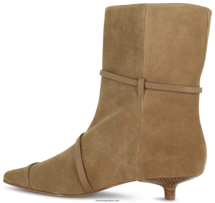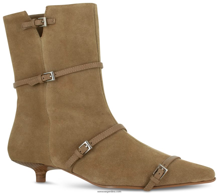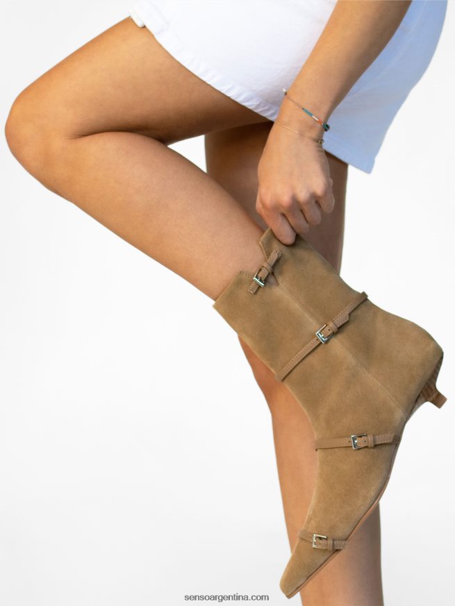 Bota de ante de becerro almendra, con tacón mini y detalle de hebilla.