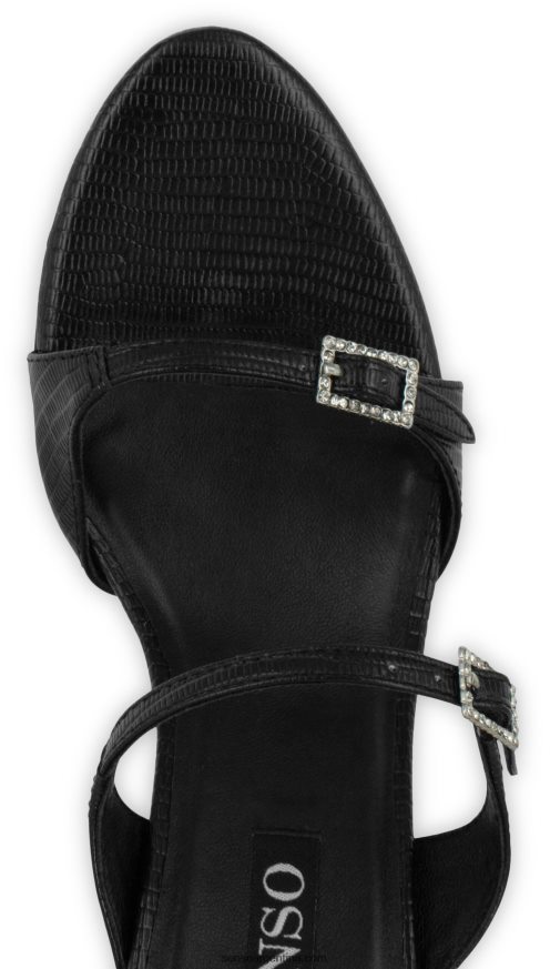 Sandalias de tacón de lagarto con estampado de ébano con hebilla adornada con cristales y puntera en forma de almendra.