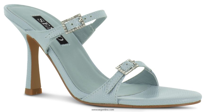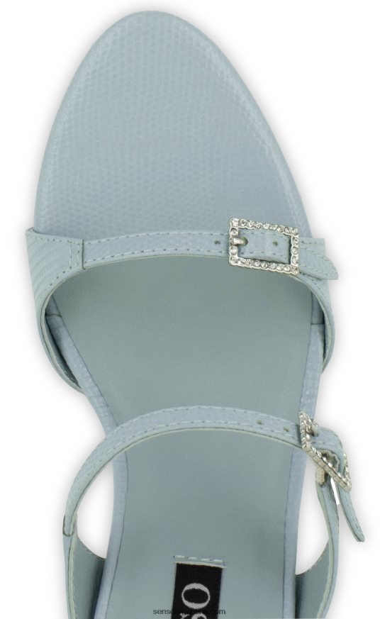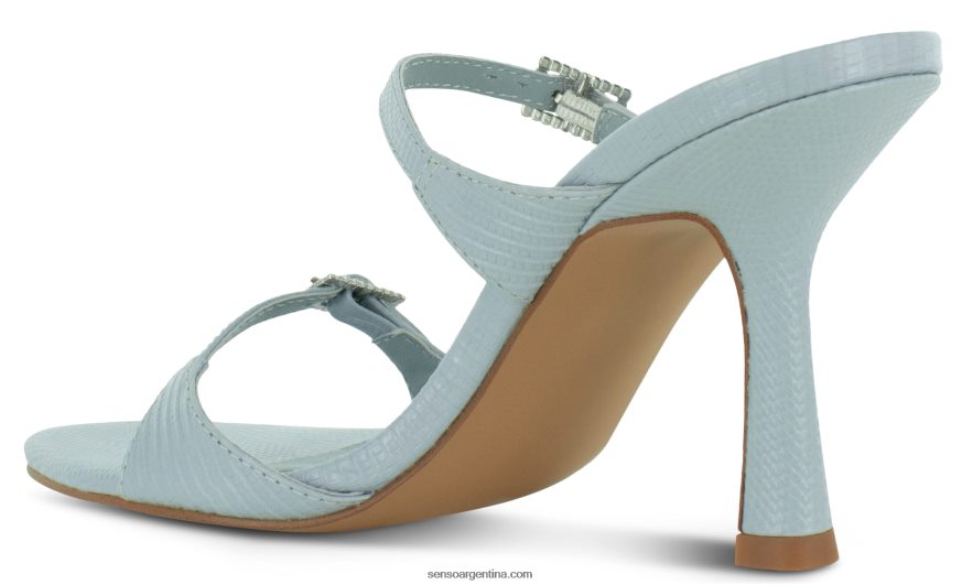 Material de lagarto con estampado de cielo con dos tiras cuadradas, hebilla de cristal y puntera en forma de almendra.
