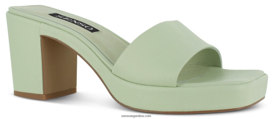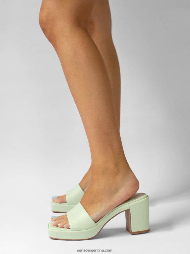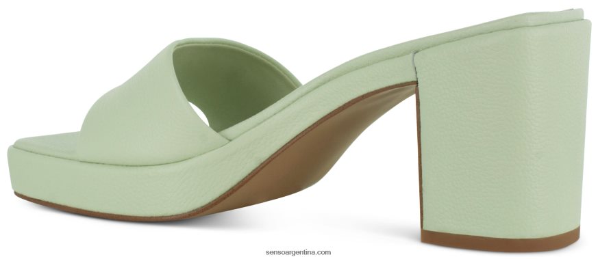 Zapatos mule con tacón en piel de becerro granulada color menta con tacón grueso y correa delantera gruesa.