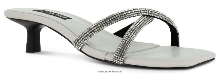 Zapatos mule brillantes de mazapán mate para niños con un diseño cruzado de correa adornada con cristales, sutil tacón bajo y puntera cuadrada.