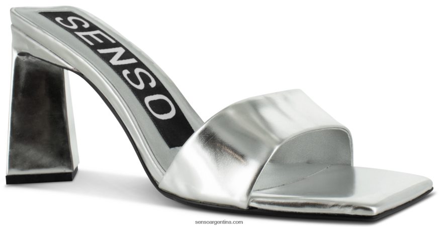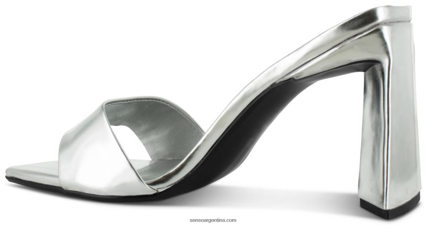 Tacón de cromo plateado, con tacón piramidal, puntera abierta y suela sintética.