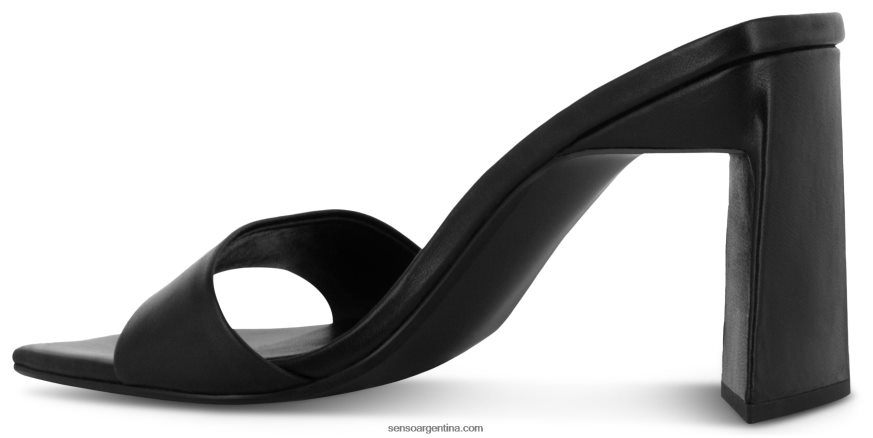 Zapatos chines con tacón en piel de napa color ébano con un diseño sin cierres, marca en la plantilla y tacón de bloque triangular.