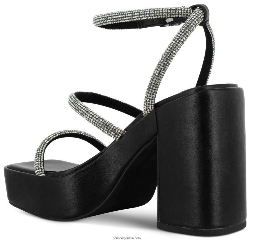 Sandalias con correa de cristal de ébano, con tacón de bloque de plataforma, hebilla de metal y puntera cuadrada.