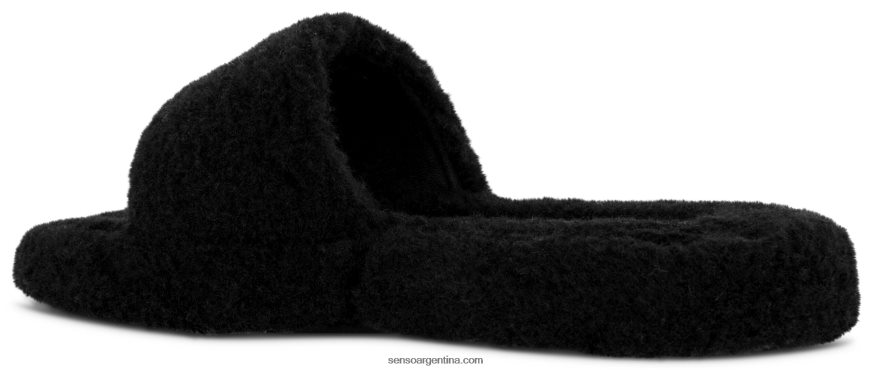 Sandalias de piel de oveja sintética de ébano con un diseño suave y esponjoso y suela de goma.