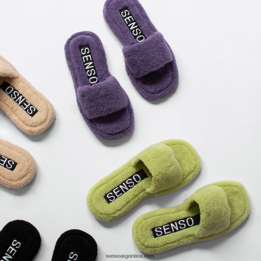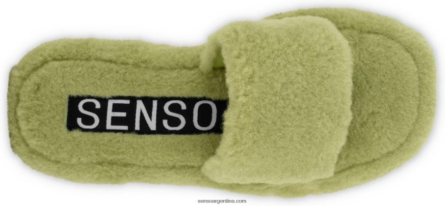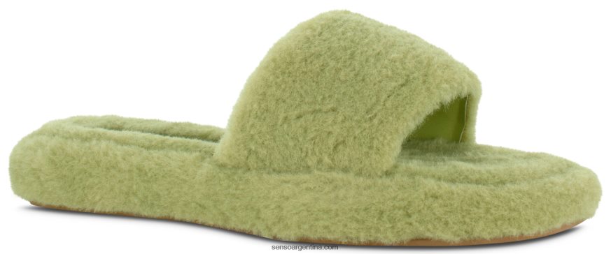 Sandalias de piel de oveja sintética color pistacho, con un diseño sin cierres esponjoso y suela de goma ligera.