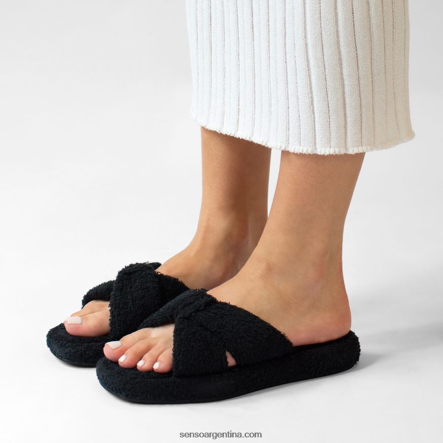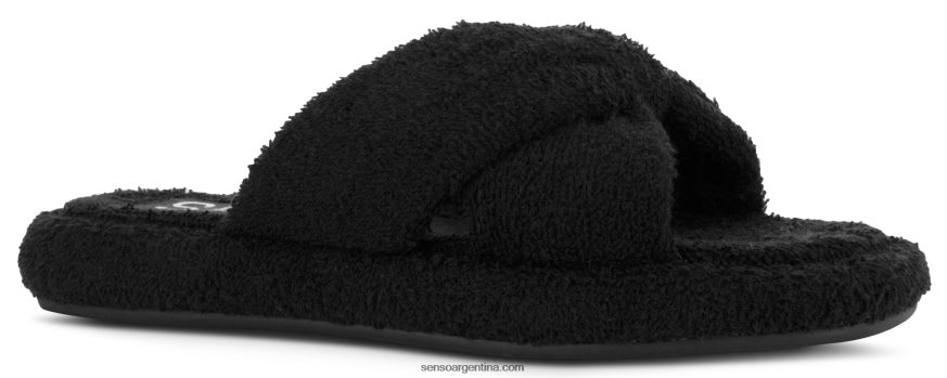Chanclas de toalla color ébano con tiras entrecruzadas con un suave interior acolchado y suela de goma.