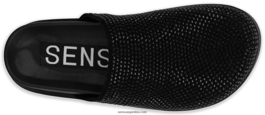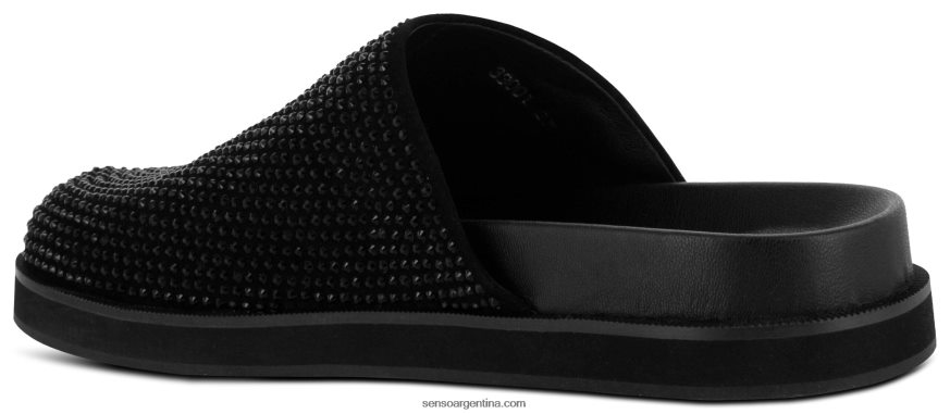 Zapato mule en antelina ebony y cristales, con diseño de strass, puntera cerrada y suela de goma.