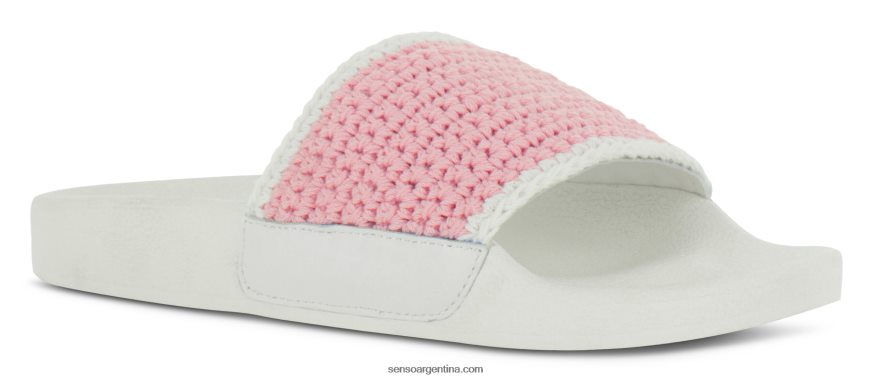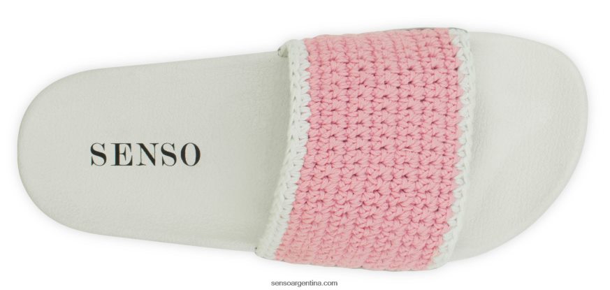 Sandalia de ganchillo de fresa con una plantilla moldeada y orgullosamente exhibida como un zapato apto para veganos.
