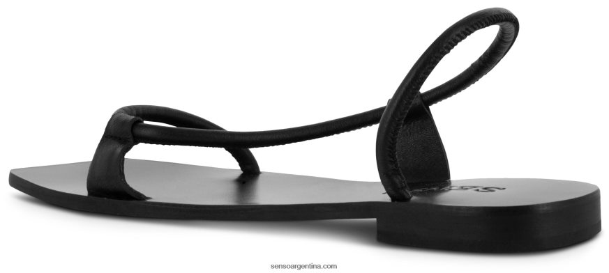 Sandalias de piel de becerro mate color ébano con un detalle cruzado y suela de punta cuadrada.