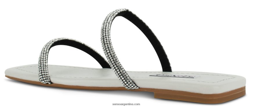 Sandalias con tiras de cristal de mazapán y puntera cuadrada, tacón plano y pespuntes en la plantilla.