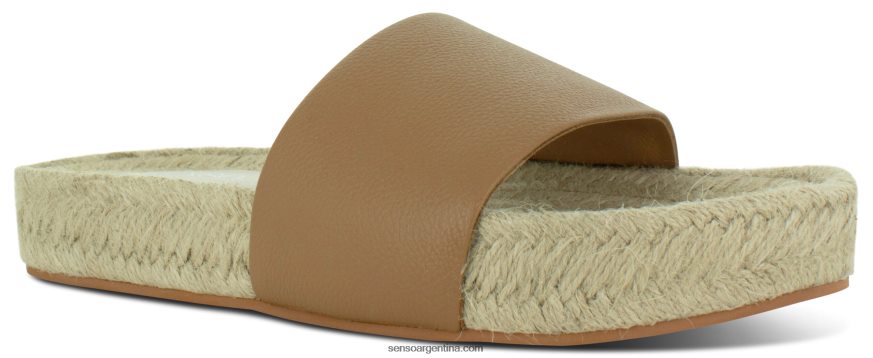 Sandalias de plataforma de piel de becerro suave graneada color canela con entresuela tipo alpargata, diseño sin cordones y suela de goma ligera.