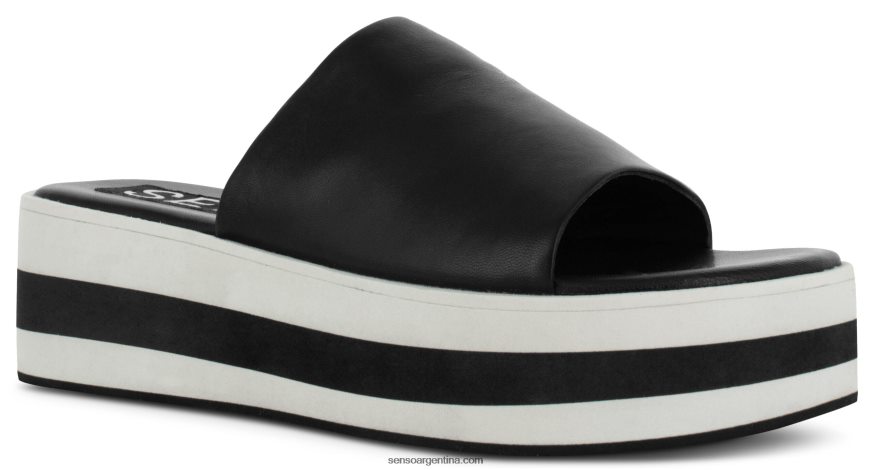 Sandalia de niño ébano mate con plataforma elevada, suela de goma ligera, correa gruesa delantera con diseño sin cordones.