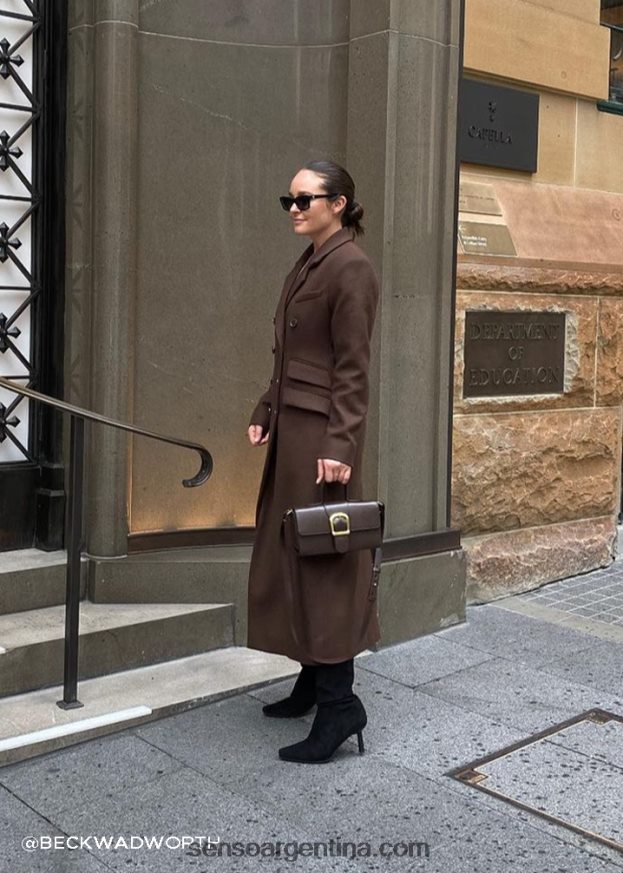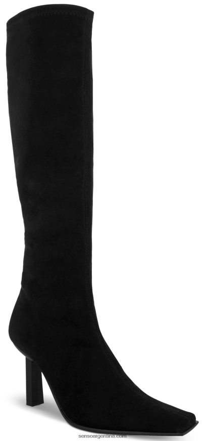 Botas hasta la rodilla de ante sintético elástico de ébano, con tacón de aguja, apariencia de calcetín y puntera en forma de almendra.