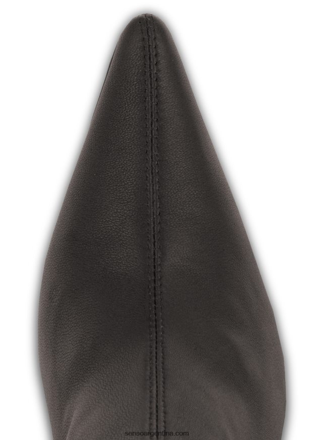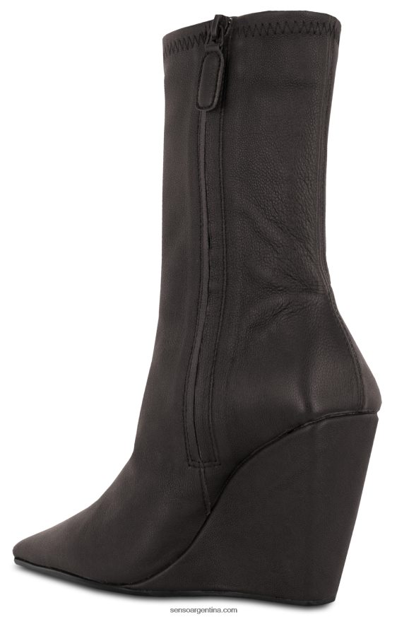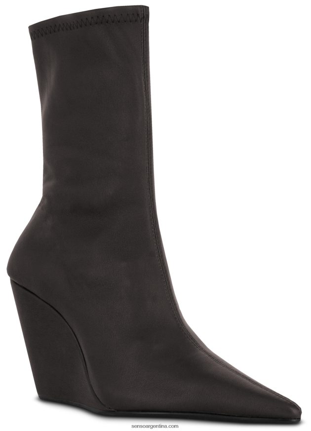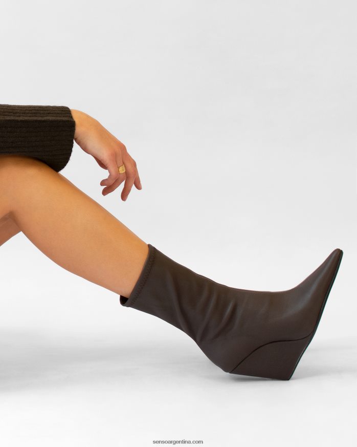 Botas de piel sintética elástica color cacao, con tacón de cuña, puntera en punta y suela de goma.