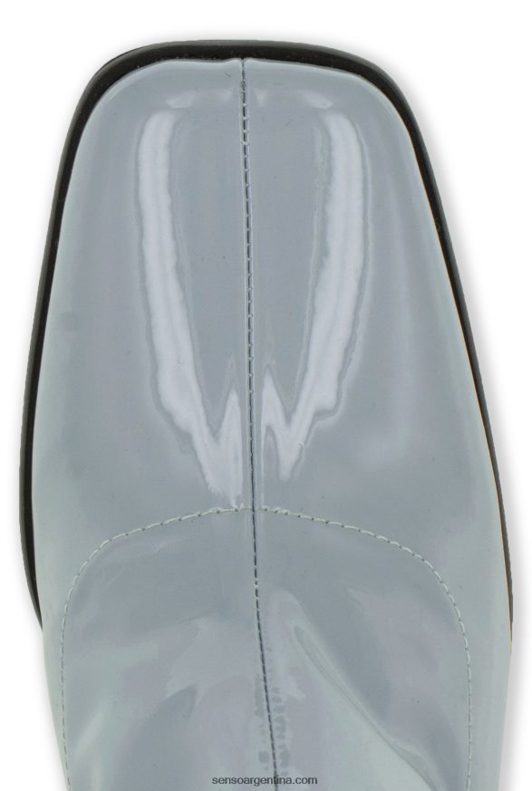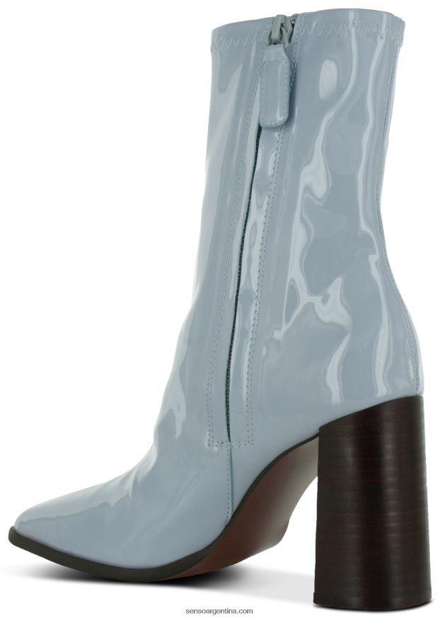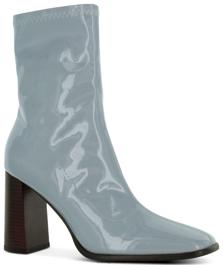 Botín de charol sky stretch, con tacón en bloque, puntera cuadrada y cremallera oculta en la entrepierna.